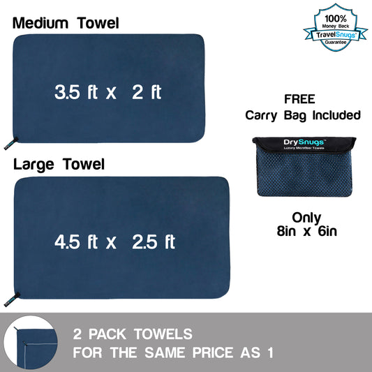 DrySnugs - Luxury Microfiber Travel Towels - 2 Pack